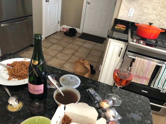 The Host served an exquisite red coconut Thai salmon curry, which was well received. No photographs were taken, but using some leftovers and adding jalapeños, cherry tomatoes and an egg we made this for breakfast: