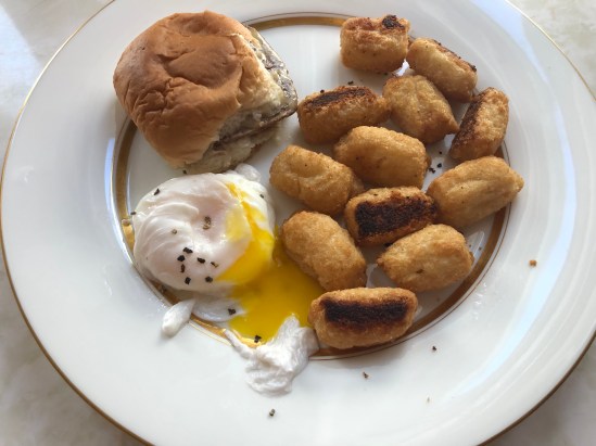 Frank came over earlier “to help with something”, and I made this breakfast: