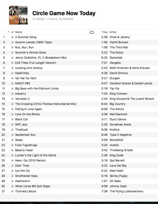 Track 32 should read side one of A Passion Play by Jethro Tull, perfect for catering.