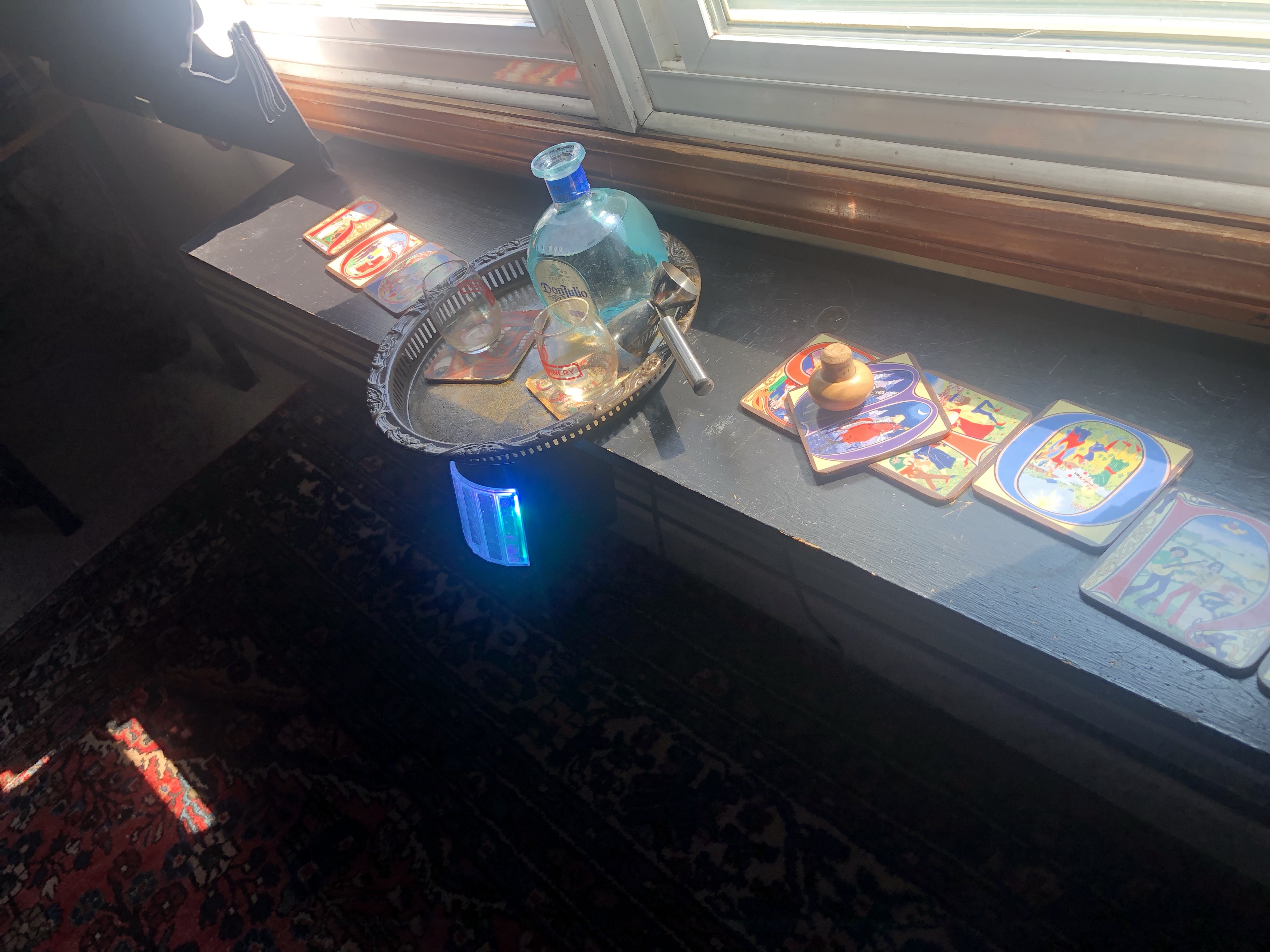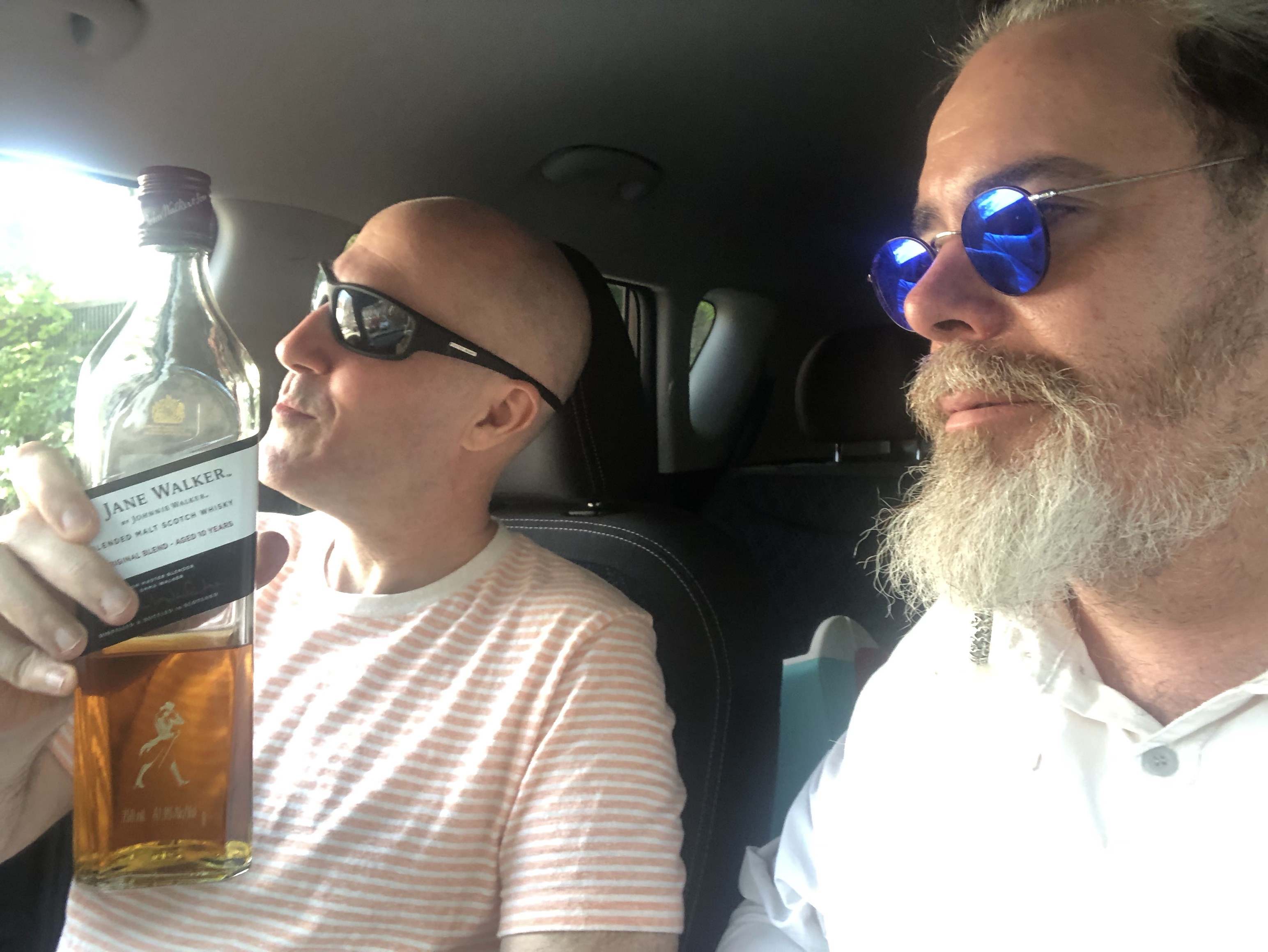 Then I met Brother Jerome for some air conditioned car times in his parking lot. I had (for inexplicable reasons) two bladders of Mai Tai from OLG to beat the heat. Chico Hamilton’s “South Pacific” was the perfect lounge music. We also sampled the exquisite and excellent Jane Walker scotch: