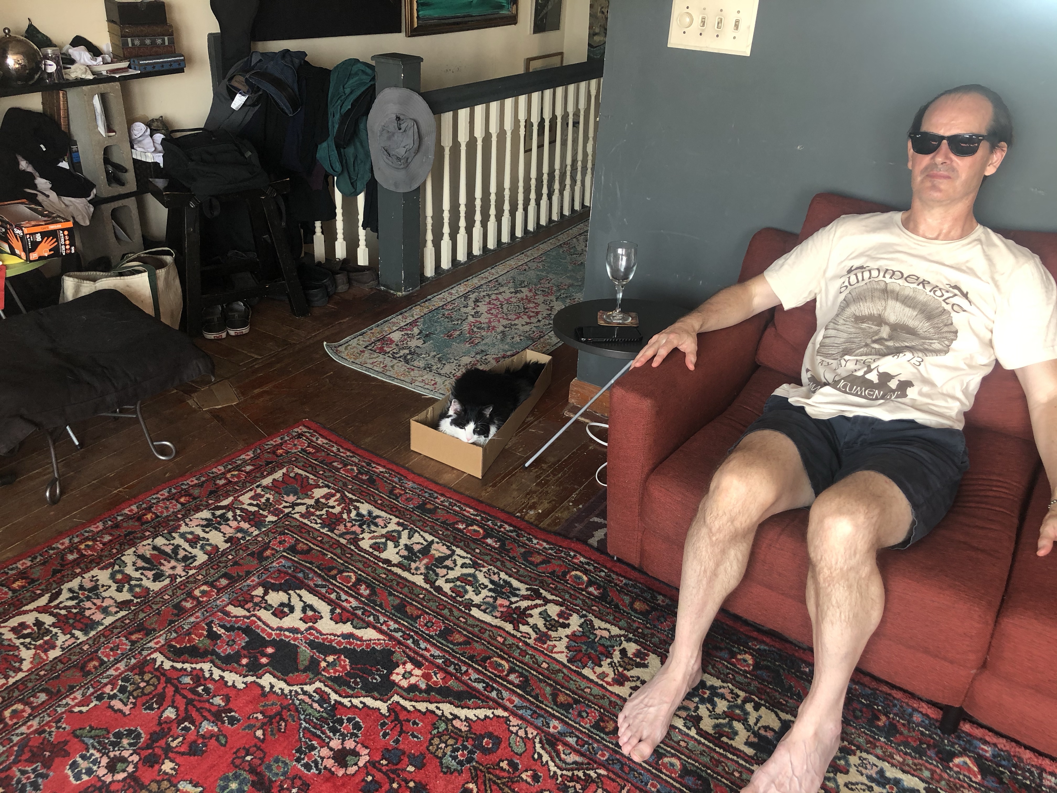 June and July were difficult times for Captain Cat. But, after a radical procedure he is doing quite well. This was the last photograph of him in his collar, helping me sort my ghost tips the other night: