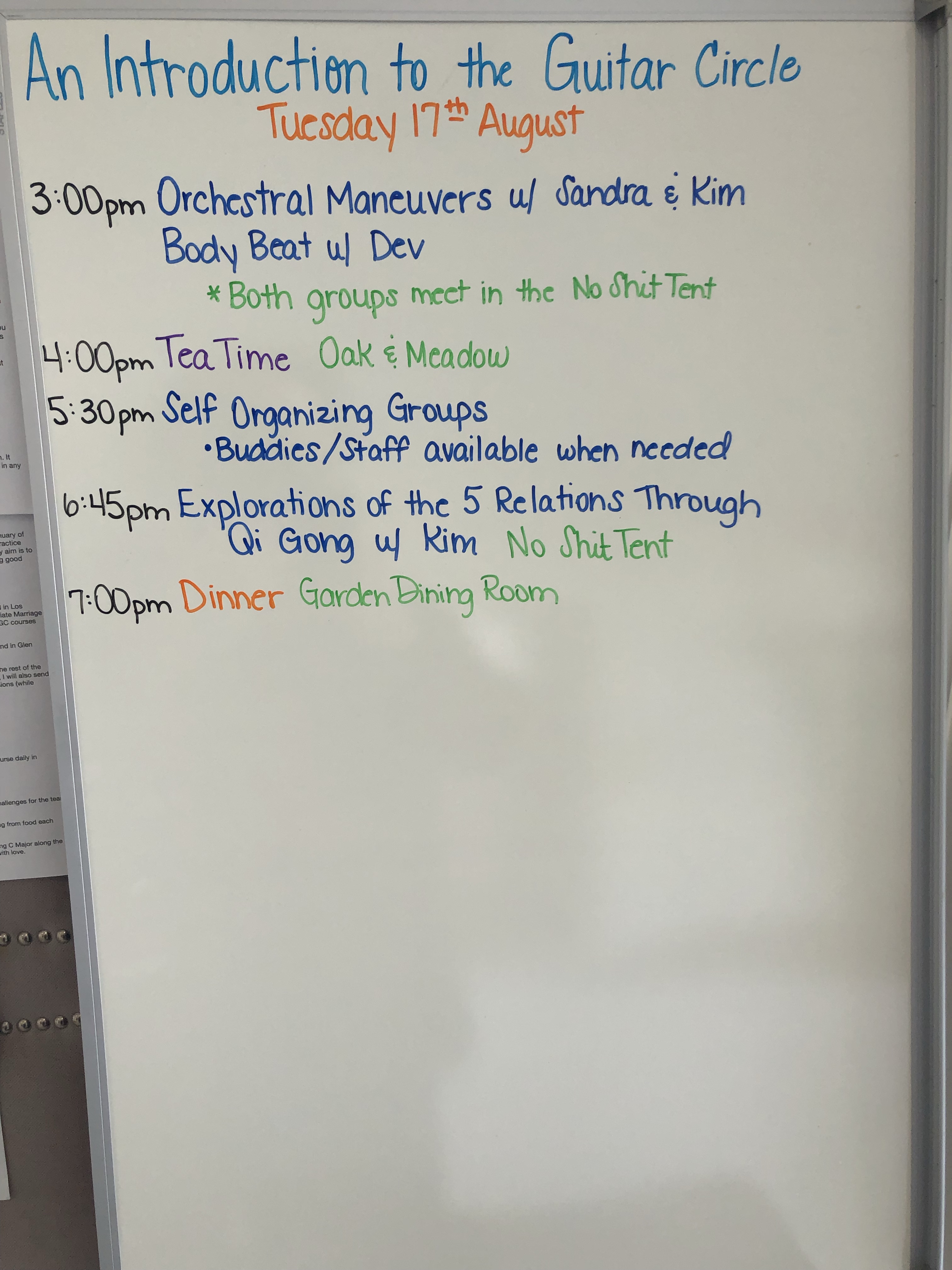 On night three were were told of a concert we’d be putting on for Robert and the other teachers and active Audients. My band was called “Unplastered”: